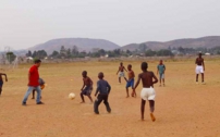 最上部の写真で少年が手にしているボールは「プラスティックボール」食パンが入っているビニール袋を何十にも重ねて丸くしたもの。ジンバブエではサッカーをしている少年が最もよく使用しているボールです。